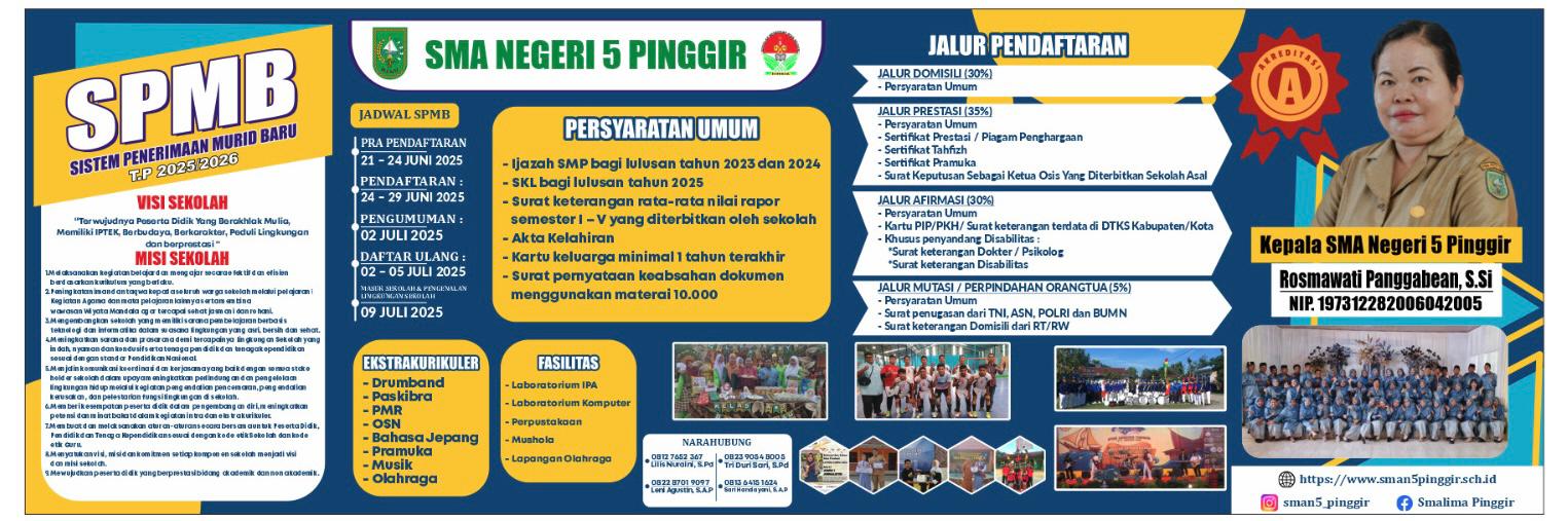 Sebanyak lima siswa SMAN 5 Pinggir berhasil lolos seleksi Beasiswa Sawit tahun 2025 yang diselenggarakan Badan Pengelola Dana Perkebunan Kelapa Sawit (BPDPKS). Berikut daftar nama keli